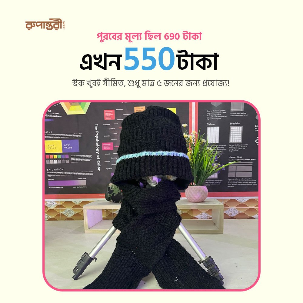 রূপান্তরীর 2 in 1 Windproof Cap & Scarf আপনার মাথা, কান ও গলাকে পুরোপুরি ঢেকে রাখে, তাই ঠান্ডা বাতাস ঢুকতেই পারে না।