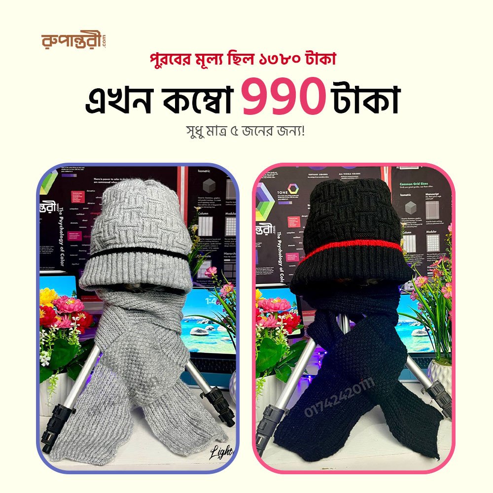 রূপান্তরীর 2 in 1 Windproof Cap & Scarf আপনার মাথা, কান ও গলাকে পুরোপুরি ঢেকে রাখে, তাই ঠান্ডা বাতাস ঢুকতেই পারে না।
