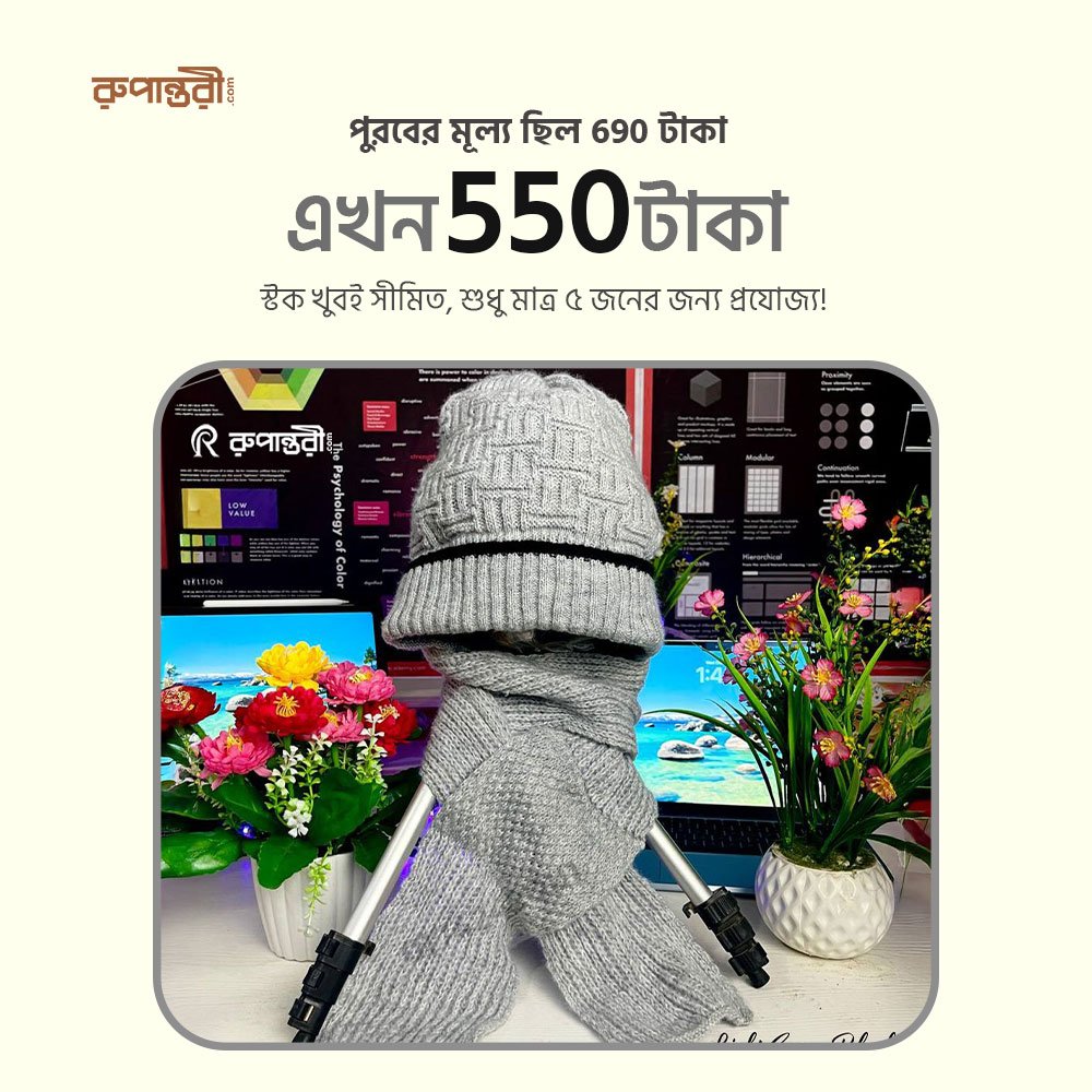 রূপান্তরীর 2 in 1 Windproof Cap & Scarf আপনার মাথা, কান ও গলাকে পুরোপুরি ঢেকে রাখে, তাই ঠান্ডা বাতাস ঢুকতেই পারে না।